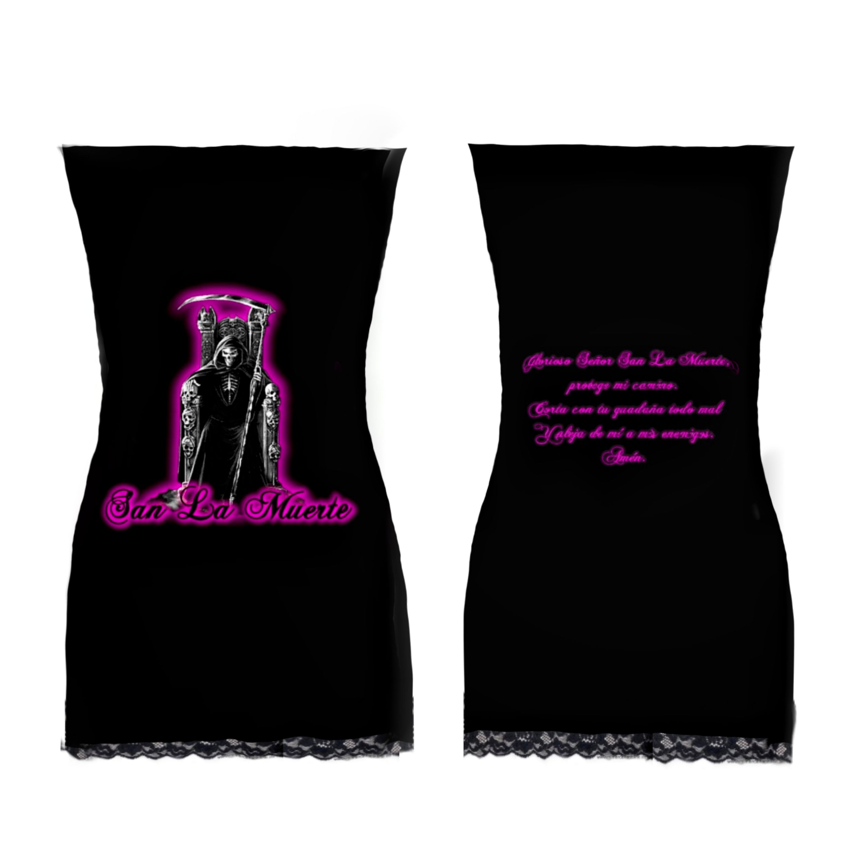 : Confeccionado en lycra sublimada, el vestido se ajusta al cuerpo, marcando cintura y silueta.